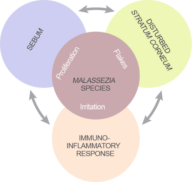 Besides the individual predisposition, dandruff appears to result from a fungi hyper proliferation (Malassezia species) due to an imbalance between the sebum production on scalp and the immune defense system.