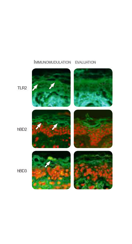 order to reach a sustainable homeostasis as a state of health. The presence of is recognized by specific Toll-Like Receptor (TLR2), which induces the production -defences (hBD) and IL-8 cytokines as an immuno-inflammation response. The decrease in TLR2, hBD2, hBD3 and IL-8 attests the down regulation of the immuno-infammatory defense system.